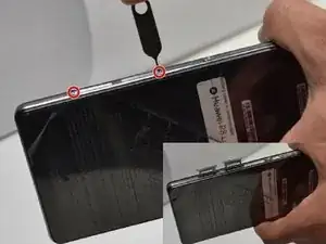 Вставьте инструмент для извлечения SIM-карты в маленькие круглые отверстия.