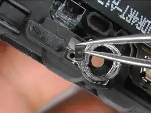 Если вы заменяете датчик приближения или камеру, убедитесь, что держатель остается прикрепленным к задней стороне дисплея. Если он отойдет с старым датчиком приближения, удалите его со старого датчика и используйте небольшое количество клея, чтобы повторно прикрепить его к задней стороне дисплея.
