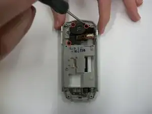 Снимите заднюю половину корпуса, поддев пластиковым инструментом верхнюю часть от нижней. Просуньте инструмент по краю телефона, чтобы высвободить защелки.