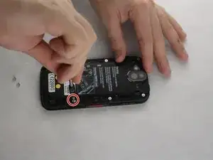 После того, как аккумулятор извлечён, удалите оранжевую ленту, соединяющую аккумулятор с телефоном.
