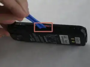 Просуньте пластиковый инструмент под аккумулятор, чтобы приподнять его и извлечь.