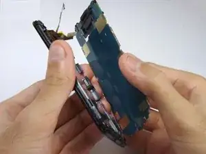 С помощью пластикового инструмента для открытия аккуратно пройдите по периметру телефона и снимите центральную рамку.
