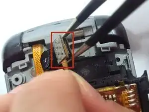 С помощью пинцета захватите нижнюю часть соединения между гибким кабелем и камерой.