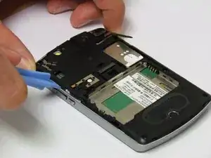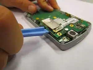 Используйте пластиковый инструмент для открытия, чтобы поднять камеру из телефона.