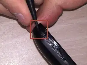 Возьмите нейлоновую лопатку и вставьте её между задней пластиковой крышкой телефона. Начните с зазора в правом нижнем углу и обойдите лопатку вокруг корпуса телефона, пока он не отделится.