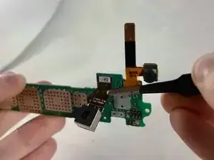 Поднимите и отсоедините разъем от телефона с помощью пинцета.