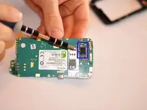 После удаления винтов отсоедините заднюю часть телефона от материнской платы.