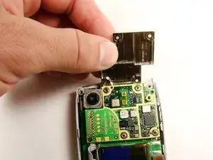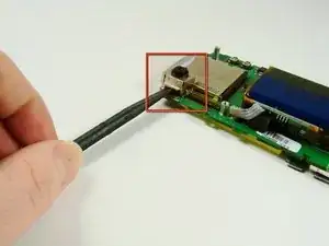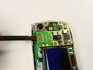 Используйте лопатку, чтобы приподнять плату от её розетки. Снимите плату с остальной части телефона.