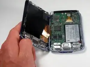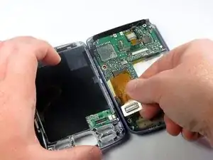 Коричневая плёнка, соединяющая материнскую плату с экраном, может порваться, если действовать неаккуратно.