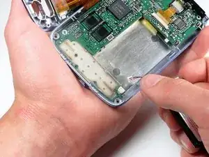 Отверткой Phillips #00 отвинтите один винт длиной 3.5 мм, крепящий материнскую плату к корпусу.