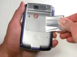 Альтернативная процедура: Под камерой нащупайте углубление и разрежьте наклейку прямо над ним, чтобы открыть скрытый винт.