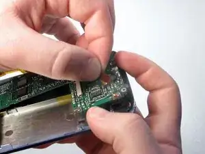 Аккуратно отключите белый компонент, соединяющий аккумулятор с материнской платой.