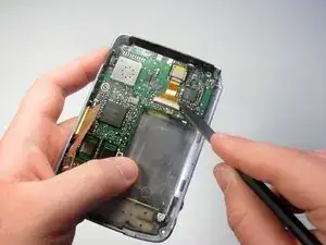С помощью лопатки отомкните материнскую плату от корпуса устройства.