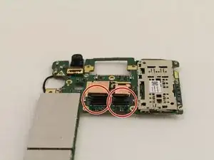 Аккуратно отсоедините две защёлки разъёмов камер от материнской платы с помощью инструментов iFixit.