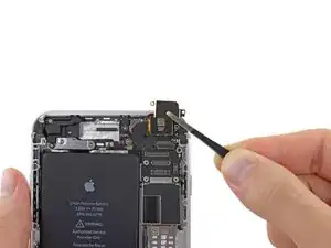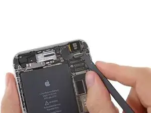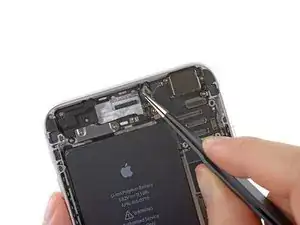 Удалите металлическую скобу соединителя аккумулятора из iPhone.
