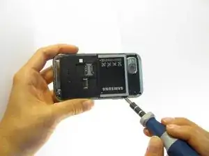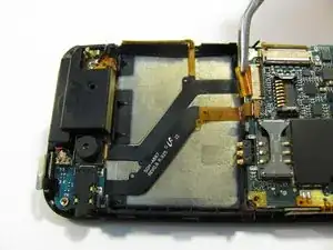 Используя нейлоновую лопатку, аккуратно подденьте серебристую пластиковую заднюю панель от корпуса телефона.
