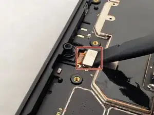 Осторожно вставьте лопатку между материнской платой и скобой передней камеры, чтобы создать зазор для удаления.