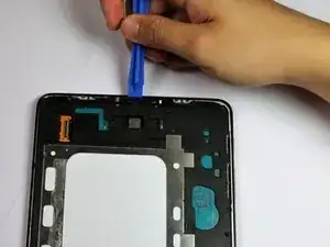 Вставьте пластиковый инструмент для поддёма в зазор между экраном и корпусом планшета в месте, где хотите начать снятие экрана.