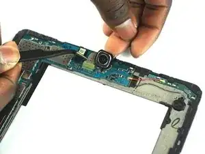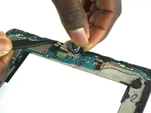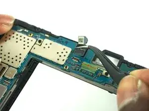С помощью точечных пинцетов удалите небольшой замковый разъем из корпуса планшета.