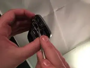 Используя лопатку, отделите золотую ленту от ее опорного места. Она должна легко отделиться, как если бы вы расстегивали небольшое велкро. После отделения камера должна легко выскользнуть.