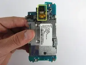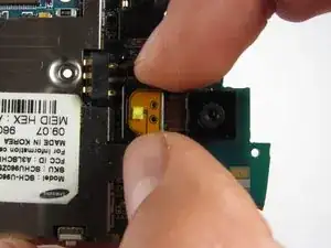 С помощью двух пальцев аккуратно отсоедините камеру от материнской платы, поднимая её прямо вверх.