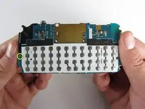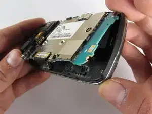 Переверните материнскую плату и аккуратно поднимите элемент динамика/антенны прямо вверх.