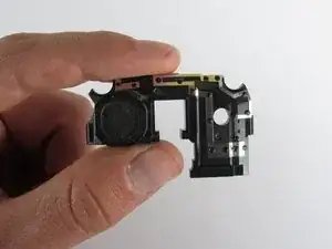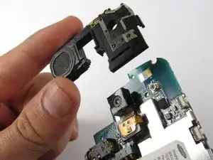 Камера удерживается в середине элемента динамика/антенны. Убедитесь, что вы поднимаете прямо вверх, когда поднимаете элемент динамика/антенны, иначе вы можете повредить камеру.