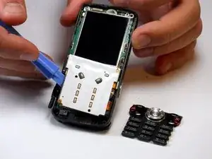 Отделите резиновые клавиши от их основы. Не сдвигайте их с боку.