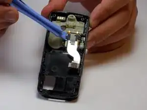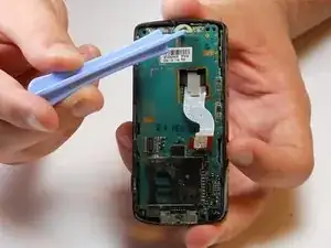 Надавите на нижнюю сторону ленточного кабеля в месте крепления пластиковой монтажной лопаткой, пока он не отсоединится.