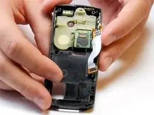 Аккуратно нажмите на модуль камеры со стороны, обращённой к вам. Модуль должен отвалиться от пластиковой опоры.