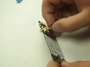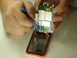 Аккуратно подденьте язычок, удерживающий шлейф дисплея, и извлеките шлейф.