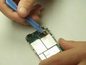 Вытащите камеру через переднюю часть материнской платы.
