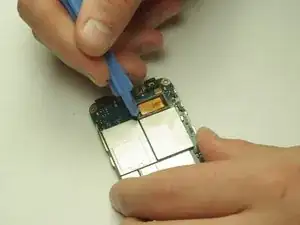 Используйте пластиковую лопатку, чтобы отслоить шлейф от материнской платы.