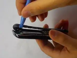 Вставьте пластиковый инструмент для открытия между двумя половинами корпуса. Подденьте вокруг телефона, чтобы отсоединить заднюю крышку.