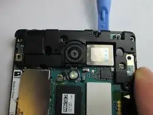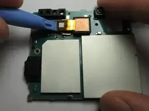 Используйте пластиковый инструмент для открытия, чтобы отсоединить камеру от материнской платы.