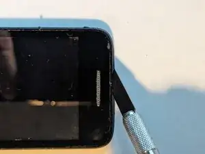 Нагрейте защитное стекло экрана с помощью iOpener, теплового фена или даже фена для волос, чтобы размягчить клей, удерживающий его на рамке дисплея.
