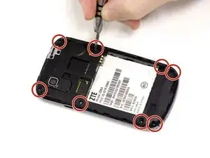 С помощью отвёртки J00 открутите 8 винтов с крестообразным шлицем на чёрной пластине устройства.