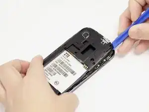 Используя лопатку, подденьте заднюю панель снизу и отсоедините её.