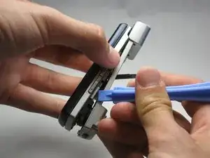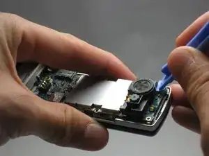 С помощью инструмента для вскрытия iFixit аккуратно подденьте камеру/динамик и снимите его.