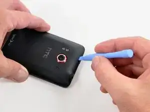 Используйте инструмент для открытия iPod, чтобы приподнять заднюю крышку вокруг периметра Evo.
