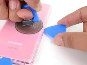 Резко и равномерно потяните за присоску, чтобы создать зазор между задней крышкой и рамой.