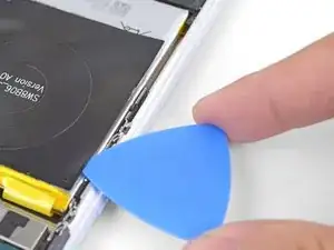 Используйте пластиковый инструмент, чтобы прорезать вокруг нижнего правого угла и продолжить вдоль нижнего края телефона.