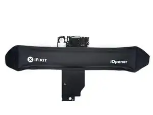 Приложите нагретый iOpener к графитовой ленте на нижнем крае крышки материнской платы.