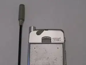 Указательным и большим пальцами захватите антенну у основания и открутите против часовой стрелки. Когда она ослабнет, извлеките антенну, потянув её из отверстия.