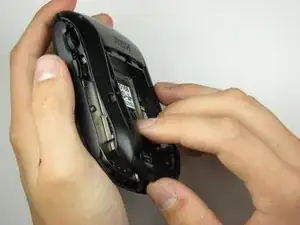 Нажмите на кнопку блокировки на задней стороне устройства.