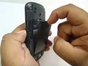 Толкните верхнюю часть аккумулятора пальцем вниз и поднимите аккумулятор из телефона.