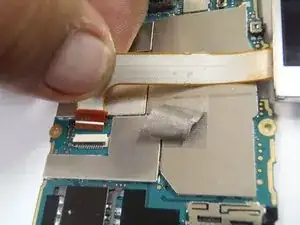 Удалите один винт Phillips #0, который фиксирует плату к переднему корпусу телефона.