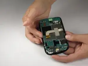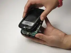 Этот шаг может быть сложным. Начните с вытаскивания задней крышки из передней оболочки. Когда она начнет подниматься, двигайте телефон из стороны в сторону, пока вся задняя часть не освободится.