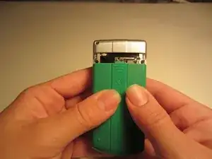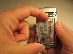 Используйте указательный палец для нажимания на верхней части батареи и потяните ее к себе.