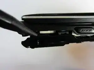 Вставьте лопатку между двумя резиновыми амортизаторами и корпусом телефона. Затем поверните лопатку, чтобы вытащить каждый амортизатор.